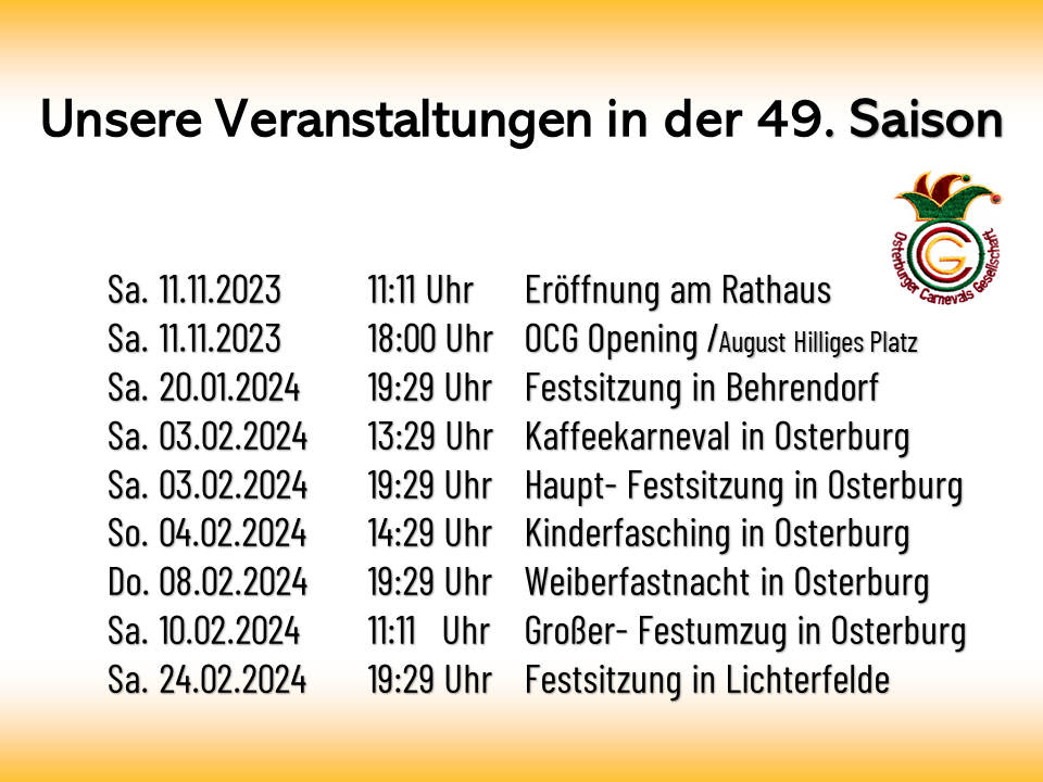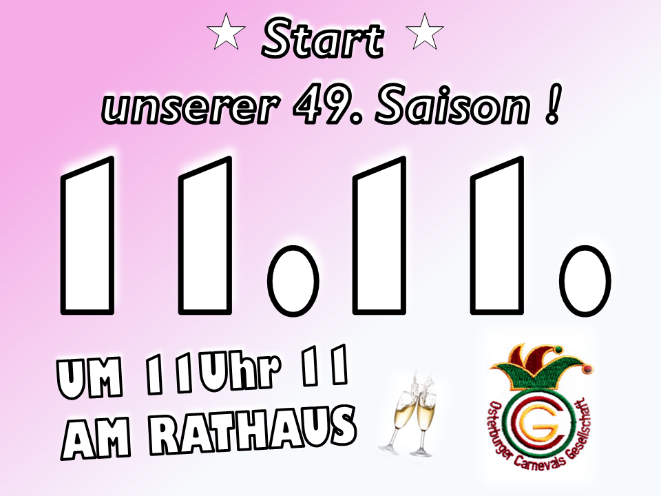 Start in die 5. Jahreszeit am 11.11.2023 Begin11Uhr 11